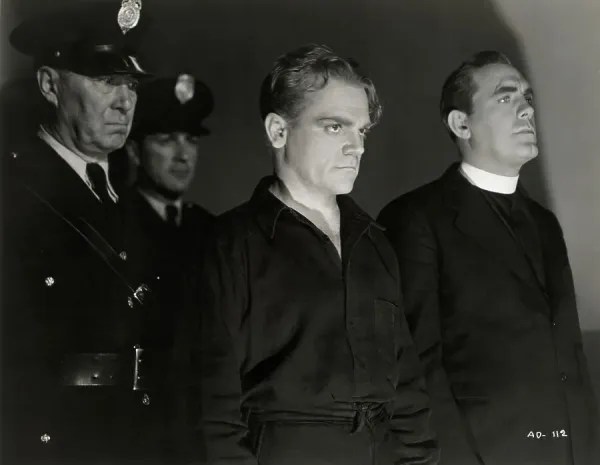 And indeed, when we think about the Hollywood production code, led by Catholic censor Joseph Breen, meddling with movie morality, passing on his suggestions/demands especially here — as this is, a movie in 1938, following the friendship between a priest and a gangster — was of keen interest to him. Breen was concerned earlier gangsters were shown in too glamorous and sympathetic light – he worried those rebels, like a pre-code Tom Powers (Cagney, in The Public Enemy) or Tony Camonte (Paul Muni, in Scarface) were leading the public astray. They were just too damn sexy and exciting for the depression-era audiences and he feared they sided with their rejection of what would be deemed a square society. A society of suckers because, look how bad things are anyway? Why go straight?
