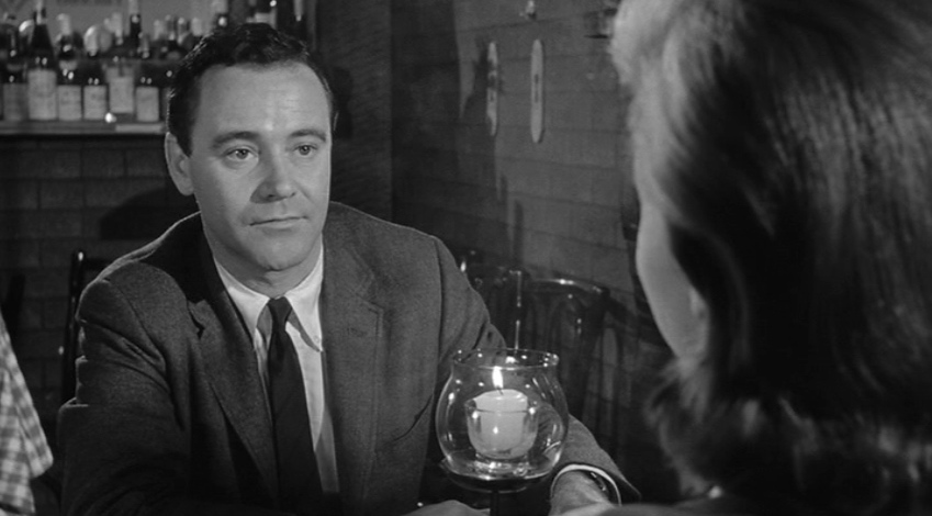 It often feels perverse watching Jack Lemmon and Lee Remick squirm — especially Lemmon. All through his career, from The Apartment to Save the Tiger to Glengarry Glen Ross, the high-strung, twinkly-eyed actor was always craving more out of life. But that something more, even when given a happy ending (like The Apartment, which isn't so happy) he will seemingly never satisfy. He'll never quench that thirst. With humor (Some Like It Hot) and devastation (Glengarry Glen Ross), he's desperately hanging by a thread, perpetually frustrated. He may win The Apartment's Fran Kubelik in the end but will he keep her? Or will she become Remick's Kirsten Arnesen Clay?
