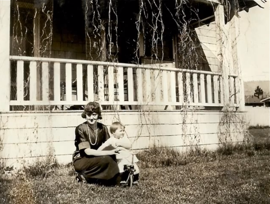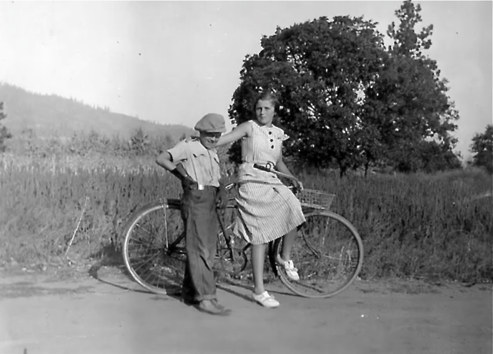 Dorothy was not the matriarch to discuss her past. As far as I know, she rarely talked about her mother, she rarely discussed her first husband, who fled the family and eventually went to prison (Dorothy married several times — maybe this is family lore but I tend to believe my family — one died reportedly in a barroom brawl, another was a pharmacist, I don't know who the others were — my mother was ok with some, others not so much). After ditching his family, my grandfather lived, for a time, with this family on an orchard, and my mom was hungry all the time. The kids would try to run over there to eat fruit — but they'd be shooed off the property. And then he was sent away — he spent time in prison with his brother, my grandfather was there for grand theft, something like that, I'm not sure, his brother was there for murder. Only a few days ago did I learn Dorothy had a younger brother. My mother told me. His name was Bobby, like my brother. Dorothy's Bobby, sometime in his early thirties, was killed by a drunk driver. Bobby is the boy, standing with his big sister next to the bike. He's wearing a hat. He liked hats. And I like to think that his mother Ethel was happy to see him in hats. She liked them too.