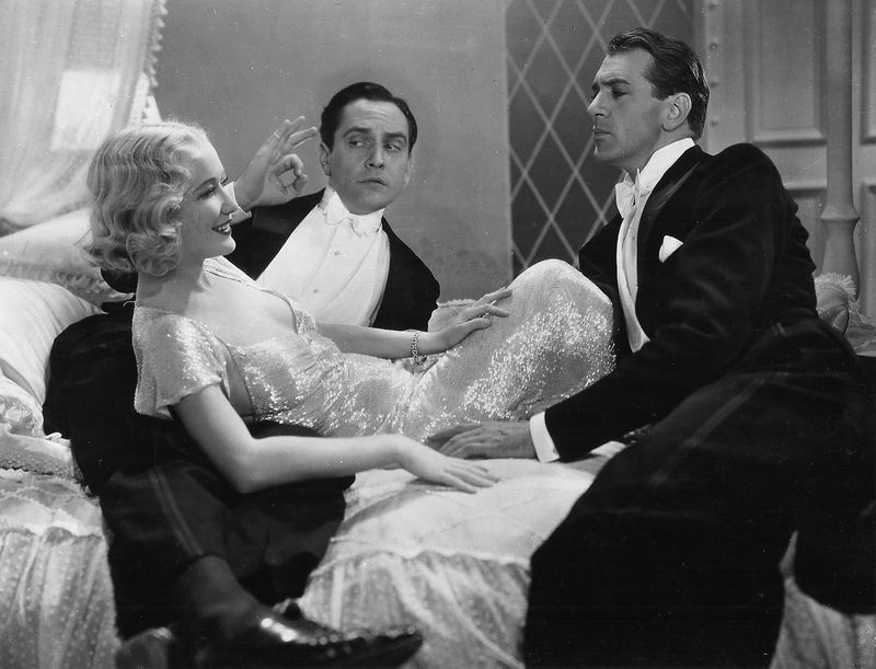 Design for Living recognized that desire is not divided unequally between the sexes. It can, in fact, be genderless. A place where gentlemen can be women. And women can be wolves. And men can be romantic Red Riding Hoods, wandering through a quixotic forest only to stumble across a beautiful blonde with shimmering white teeth, delicate little feet, and a big, beguiling wit. “The better to share you with,” she will eventually declare, before not eating them whole but tasting their specific Coop and March delicacies with equal ardency. Here, however, is where the movie reveals clearly that men are indeed men. Male horniness is not to be trifled with. Best friends or no best friends, how can they resist? This is some woman. They surrender, dear.
