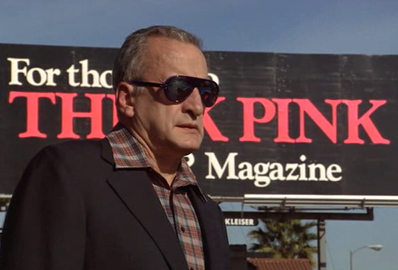 Fittingly, when Jake and Tod spill out onto the San Francisco street and into the outside real world – punching and rolling down a hilled sidewalk with garbage flying everywhere – Jack Nitzsche’s mind-bending, brilliant score is drowned by the sounds of celluloid flickering through a projector. The other times we’ve heard that sound (that I can recall) are first when Jake is tortured through his daughter’s porn film, enduring a father’s worst nightmare in that privately rented theater – famously and heartbreakingly yelling, “Turn it off. Turn it off. Turn it off!” The next time is when he watches the black & white snuff film starring his little girl’s boyfriend, the villainous Ratan (Marc Alaimo), in which a young woman is killed. On the street, the sound spikes the picture without a film showing, an interesting auditory decision. Is Jake so possessed by what he’s seen that he’s now hearing projectors in his head? Or are we so absorbed in this violence that the flickering sounds natural? Am I actually hearing this? Have I lost my mind? Jake finally forces Tod to submit by bashing his face into a pole.