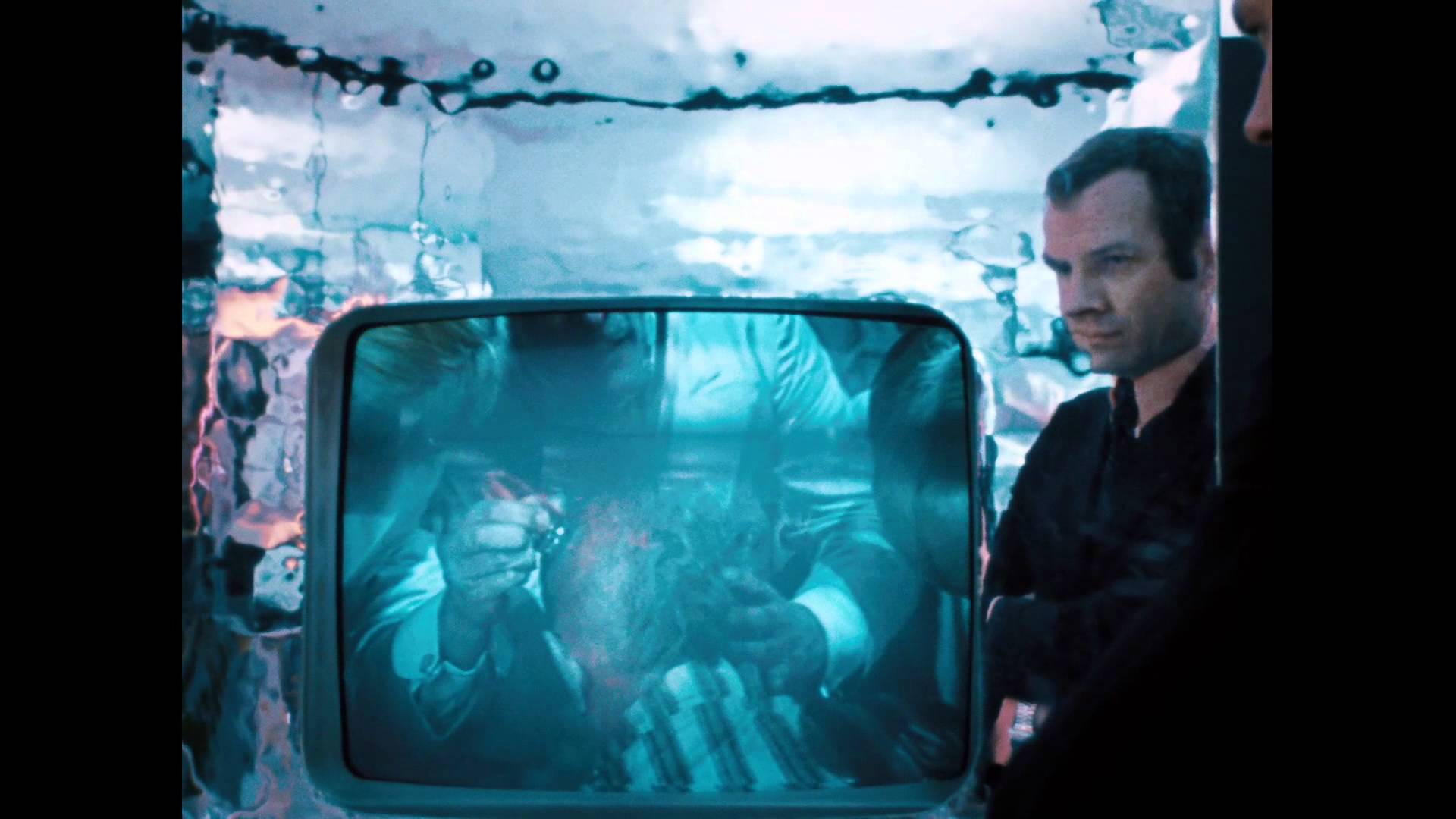 Whatever the case, life, lore, Fassbinder’s methods of madness with actors, his real life chaos and precision, it all swirls together perfectly in Fassbinder’s mind-bending fantasia. (Fassbinder also had excellent taste in music, and all of the music in World on a Wire is used effectively, often unexpectedly or referentially, from Strauss’s “The Blue Danube,” to Anton Karas’ The Third Man score, to Marlene Dietrich’s “The Boys in the Backroom,” to Elvis Presley’s “Trouble,” and Gottfried Hüngsberg score is effectively portentous.)