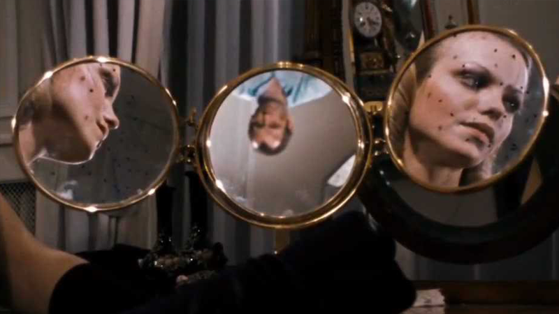 With that fantasy click, Fassbinder wasn’t just thinking science fiction when he made his one and only sci-fi epic, World on a Wire, he was likely, in part anyway, thinking of Sirk. Fassbinder and Sirk are often thematically and stylistically linked by critics, World on a Wire is no exception (and Fassbinder, serious devotee and student that he was, discussed Sirk himself). Jane Wyman could be inadvertently gazing towards another kind of future when thinking of the Fassbinder’s mirror shots – World on a Wire is a movie so crammed with mirrors and reflections, that the picture takes Sirk’s idea of a mirror’s view of a warped or opposite reality, and transplants its ophthalmic impersonations into science fiction; and most specifically, and fittingly, into a movie about virtual reality. Replacement humans. Fassbinder works with science fiction ingeniously, layering his prescient story and characters with themes many of his other picture’s explore — power dynamics in relationships, identity, societal perceptions, how we observe from inside a film as characters and outside of a film as voyeurs, how we style our lives, and how we inhabit the style around us.
