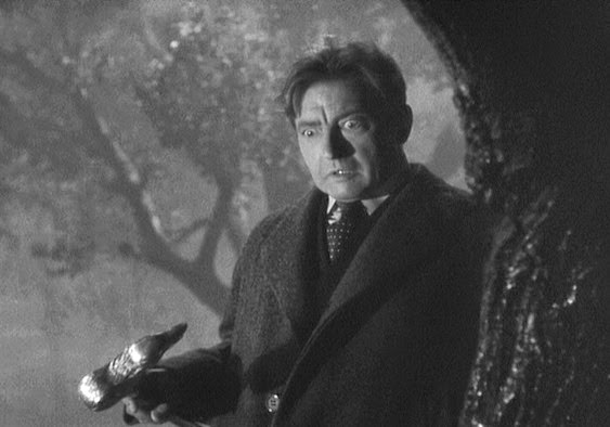 Curious. What does Larry know so well that he utters this immediately? That the unhappy extremes resulted in him leaving for eighteen years? Just that? That he was competing with his brother and that was too much for him so he needed to set himself apart from the family (that is the obvious answer). But to the film’s credit (and Curt Siodmak’s wonderful script), there’s more here for us to ponder, for instance, is there something darker and more dramatic going on in this family? In Larry himself? In his father? Those uncertainties hang over the picture with an enigmatic question mark, and are never solved, making the character’s actions and unlucky predicaments intriguing all the way through – even in more staid moments. The picture is filled with a foggy, dreamlike beauty (and creepiness, shot by cinematographer Joseph Valentine), that reflects the dreamy beauty and creepiness of Larry and Sir John, their questionable family history and maybe even their minds. The loveliness and horror of the environment mirror what Sir John discusses about the duality of man, and, perhaps, how Larry’s been submerging baser, wolf instincts into a foggy underworld – before he even becomes a werewolf.