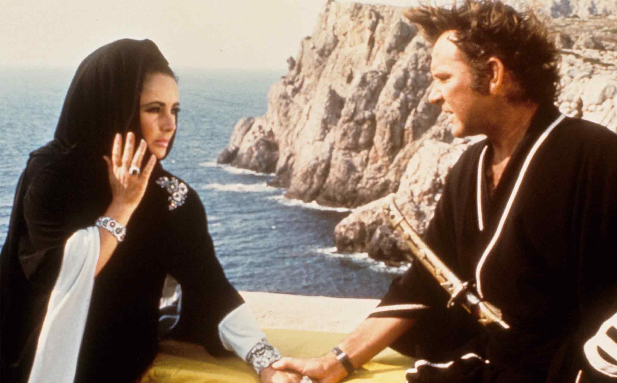 There’s so much to discuss and discover with Boom! (the wonderful music is one – by John Barry), the gorgeous cinematography by Douglas Slocombe, the costumes (as stated earlier), and the dialogue – both overwrought and weirdly beautiful- but also, funny. There’s an exchange between Chris and Sissy that I just think had to be funny. As Chris, with that gorgeous Burton theatrical lilt, recites Samuel Taylor Coleridge: “In Xanadu did Kubla Khan, a stately pleasure-dome decree. Where Alph, the sacred river, ran through caverns measureless to man down to a sunless sea.” Taylor’s Sissy simply exclaims, befuddled or perhaps making fun of him, her voice rising: