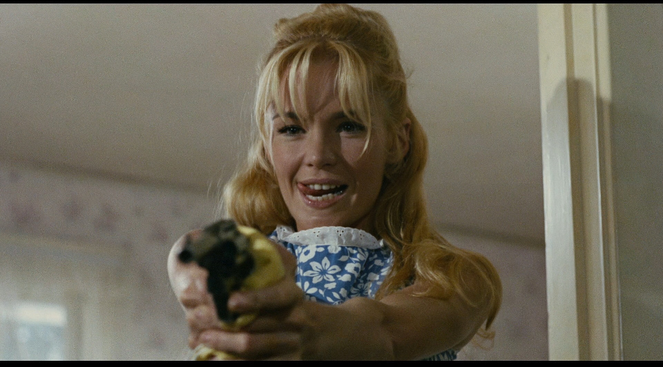 By the time of Pretty Poison, Weld had already been presented by the press (and sometimes by herself) as a notorious Lolita figure (even though she was in her 20s by the time of Pretty Poison). George Axelrod’s Lord Love a Duck had toyed with this in a surprisingly transgressive cashmere orgasm scene involving her laughing-lunatic incest-ready father, Max Showalter (a gloriously insane moment). She’d even turned down Stanley Kubrick’s Lolita saying of her choice, “I didn’t have to play it. I was Lolita.”