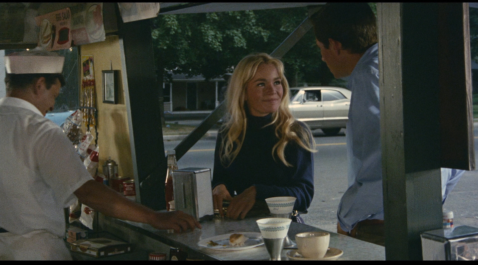 And then… a fantasy emerges. In a dizzying sequence, Dennis spies the beautiful Sue Ann Stepanek, first as a drum majorette, and then at a hot dog stand (as we’ll see later, a lot goes down at that hot dog stand). When they first take a drive in her car, she lies and says she’s 18 – but he knows better. OK, she’s in high school and almost 18, she says. He will fall for her – trying to play it cool at first, trying to take control with his games (fantasies), but when he sees her murderous glee, he realizes he’s not driving this relationship anymore. Nevertheless, he can’t leave her.