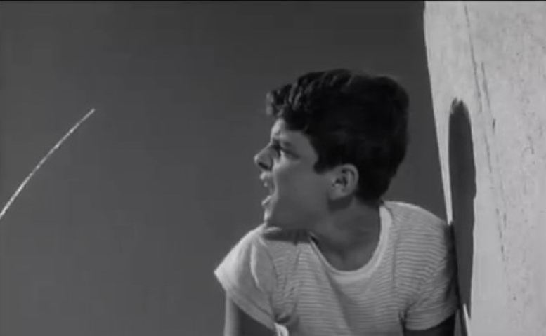 The woman slowly falling apart is Mrs. Andrews (Nancy Marchand), whom we follow as she leads one group of children to their respective homes in her uncomfortable heels. She walks with the kids behind, feet hurting, her face registering increasing amounts of dread and fear and sadness (when she is all alone, she is picked up by a truck driver who plays music loudly – and she laughs a bit but then settles into a look of absolute dread – she is incredible in this little moment). The kids talk – they wonder if the threat is real, some seem almost casual about it, others horrified. One little girl vomits on the side of the road – the poor thing bolts to her father’s work, and he acts like she’s a hysterical nuisance, then, when home, her mother says she has nothing to worry about. The girl grabs her pet goldfish, hides under her bed, as a dark shadow falls over her face. It’s heart breaking. Another kid goes home to grandma, who is suffering dementia or something like it – and they hide in the basement. He convinces her to come down by telling her it’s all play – “It’s called Hide-From-War-Game,” he says. Two other kids make it home and pray with their religious mom in the cellar – it feels more disturbing than soothing. Another little girl, Sarah (Marilyn Rogers) rushes home but mom’s not there. What to do? She’s got to find the rest of the kids. Where are they?