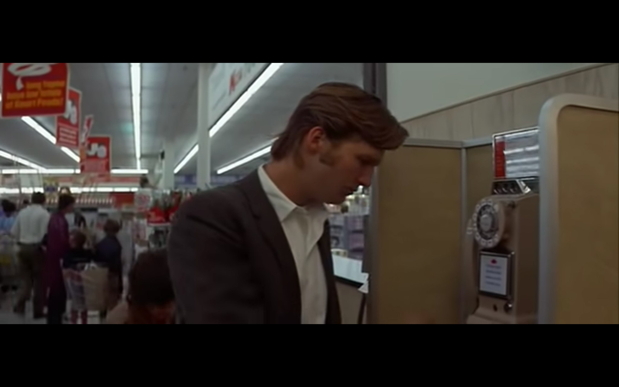 In an extraordinary scene (before his daddy is out of jail), after Junior has dropped Marge off from a party he’s not too keen on (too many strutting peacocks), the young man finds himself wandering around a Kmart at night. That image itself, the fluorescent lights and the Kmart bright colors, is so distinctly American that it catches you off guard with how evocative and, in this case, melancholic it is. He’s lonely. He calls what might be home but no one answers. He then goes into a vinyl recording booth located in the Kmart and records a greeting to his family: “I sure hope you got your stereo fixed, Wayne, so you can play this.” He keeps talking, laughing a bit nervously while trying to put a little showmanship in his message: “This is Elroy talking to you from Hickory where the cars are fast and the women are faster.” He continues with some thoughtful pauses, smiles and lingering sadness: