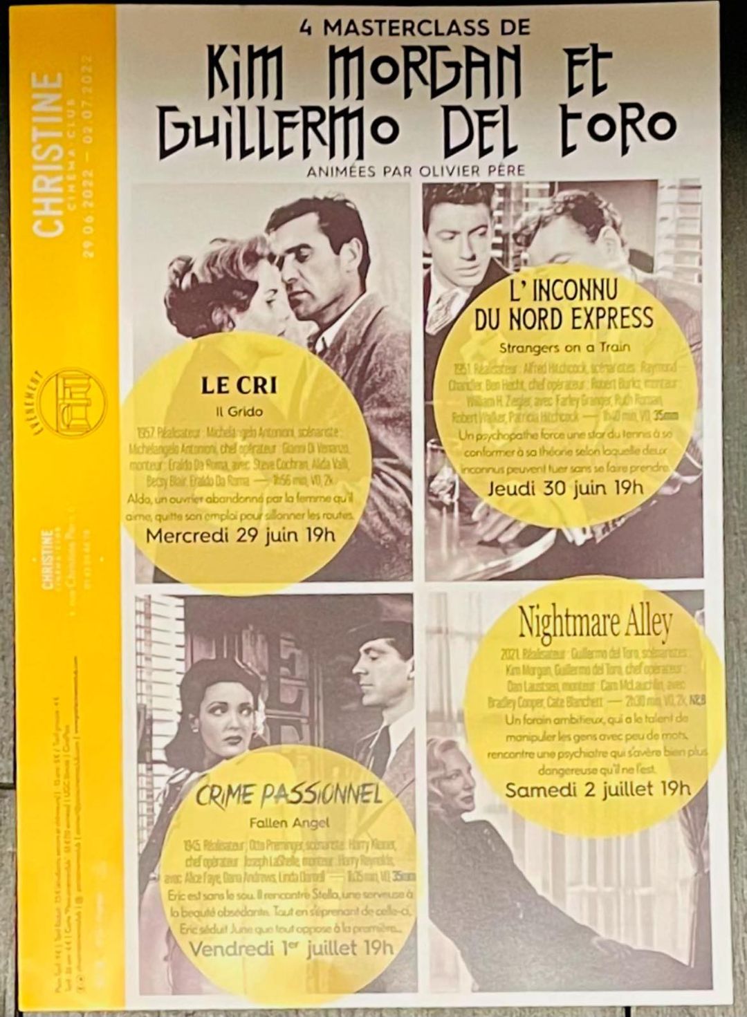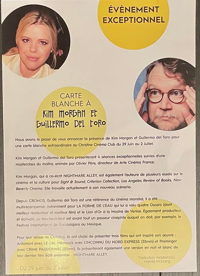 June 29-July 2 Guillermo & I will be presenting and discussing films at one of our favorite theaters in Paris — Christine Cinema — three movies that, in one way or another, informed our Nightmare Alley. Here are the movies: