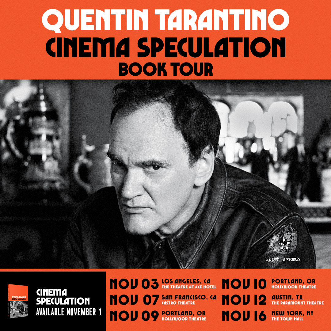 Quentin Tarantino will soon be on a multi-city tour for his new book, Cinema Speculation and I will be discussing it with him on stage at the Castro Theatre in San Francisco on November 7.